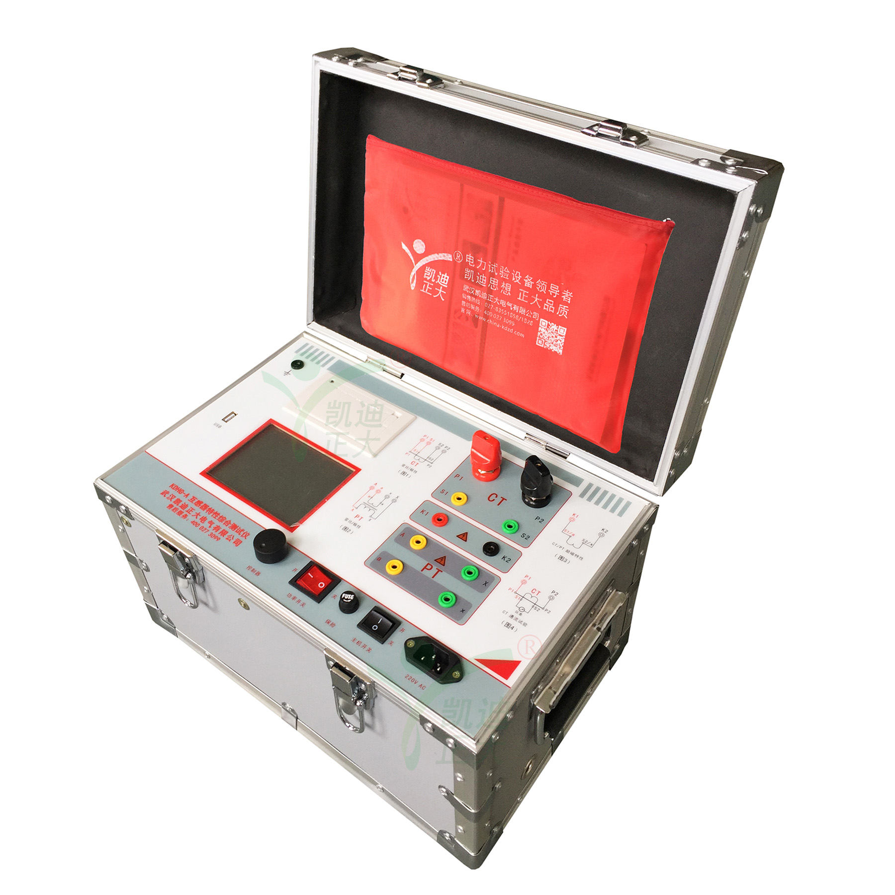 KDHG-A電流互感器現場綜合測試儀,是一種專門為測試互感器:伏安特性、變比、極性、誤差曲線、計算拐點和二次側回路檢查等設計的多功能現場試驗儀器。實驗時僅需設定測試電壓/電流值,不需要設置步長、分段點等參數,設備便能夠自動升壓/升流,并將互感器的伏安特性曲線或變比、極性等實驗結果快速顯示出來,支持數據保存和現場打印,不但省去手動調壓、人工記錄、描曲線等繁瑣勞動,還能通過USB接口將測試數據上傳到電腦進行編輯保存或打印。操作簡單方便,提高工作效率,是一種性價比較高的高科技產品。
