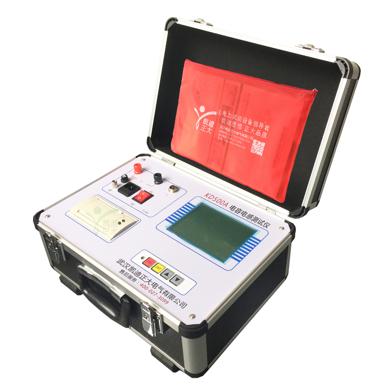 KD-500A智能電容電感測試儀是滿足電力系統無功平衡的重要設備。近年來無功問題得到了電業部門的普遍重視,無功補償成套裝置已大量投入配電網運行。電能供給要求系統有功與無功實時平衡。因此,無功-補償裝置應滿足自動跟蹤、實時補償的要求,這就不可避免地要頻繁投、切無功補償電容器組。電容器組的投、切操作,就會產生過電流與過電壓沖擊,引起電容器損壞。為保證設備的可靠性,早期發現電容器缺陷,避免故障擴大,需要定期進行檢測。而在現場電容器都是成組并聯的,傳統方法是將電容匯流排拆除,然后用老式電容表進行測量,由于電容器組是由幾十至上百個小電容器組成,要拆線測量電容量的工作量很大,而且經常拆線會使得螺絲滑牙或沒有上緊而留下安全隱患,也容易造成電容的二次損壞。因此,非常期望有一種測試儀器不用拆線就能測量各個小電容器的電容量,減輕檢修人員的負擔,提高檢修工作的效率,提高配電網運行的安全性。