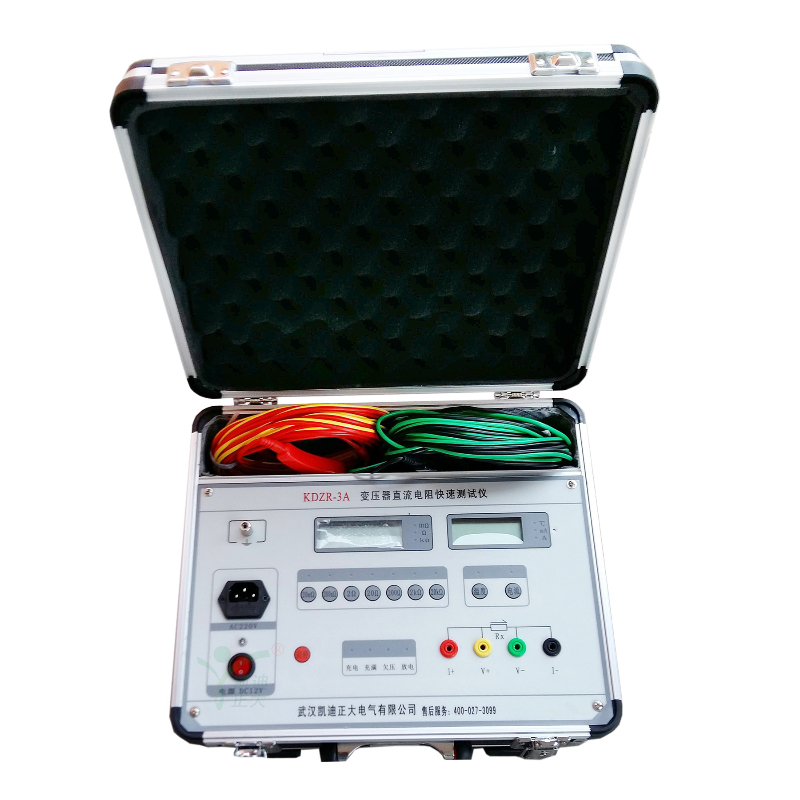 KDZR-3A直流電阻測試儀(微歐計)是取代直流單、雙臂電橋的高精度換代產品。儀器采用了先進的開關電源技術,由四位半LCD液晶顯示測量結果。克服了其它同類產品由LED顯示值在陽光下不便讀數(shù)的缺點,同時具備了自動消弧功能。本儀器具有測速快、精度高、顯示直觀、抗干擾能力強、體積小、耗電省、測試數(shù)據(jù)穩(wěn)定可靠、不受人為因素影響等優(yōu)點。是測量電力變壓器及大型電機等各種感性負載電阻及低壓開關接觸電阻、電線電纜或焊縫接口電阻的理想儀器,其測量速度比電橋快一百多倍。儀器內裝可充電電池組(12V),交、直流兩用,便于現(xiàn)場及野外測試。