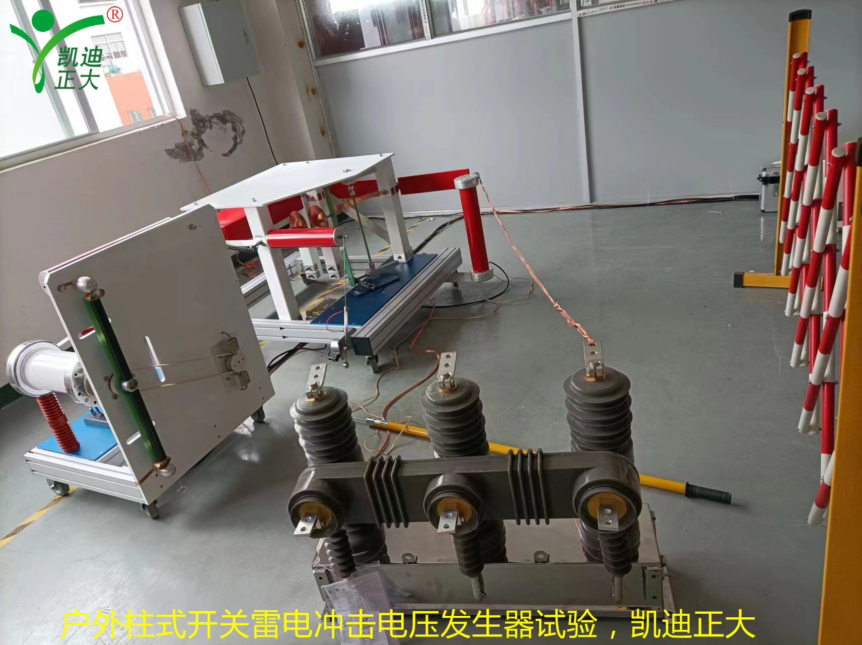 1、試驗人員進入試區后,首先確保接地棒是掛在沖擊電壓發生器本體上后,才能對被試品進行接線;
